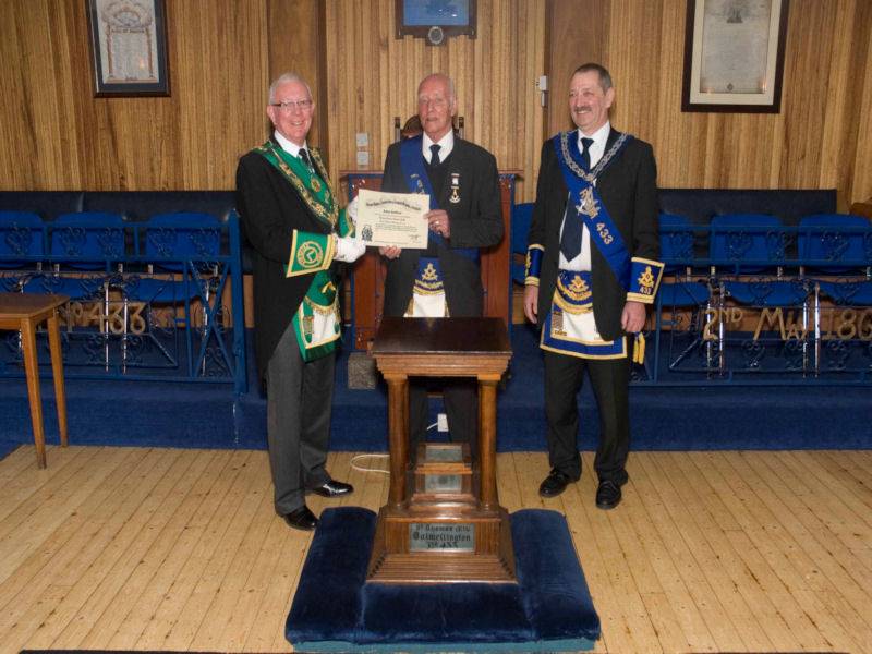Presentation of Honorary Provincial Grand Tyler to Bro. Robert Calderwood